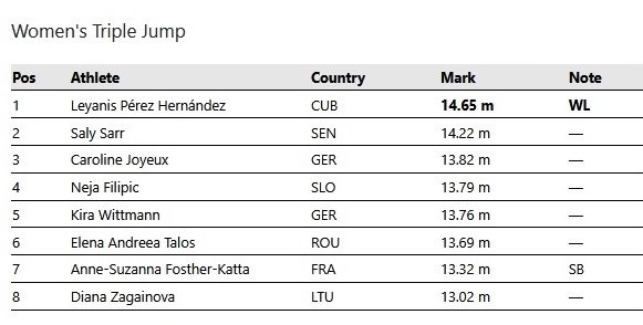 La triplista Leyanis Pérez tuvo un debut triunfal en la temporada atlética invernal de 2026, al imponerse este domingo en el mitin de la ciudad francesa de Val de Reuil, con la mejor marca del año hasta el momento.