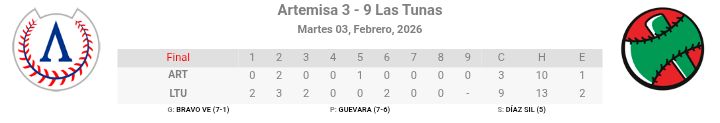 Eliander Bravo se llevó el éxito con trabajo de seis entradas en las que soportó tres anotaciones. Salvó Rodolfo Díaz, que transitó el resto de la ruta sin problemas y con solo dos imparables permitidos. Perdió el talentoso artemiseño Brander Guevara, que llevó a sus registros siete carreras en dos y un tercio de labor.