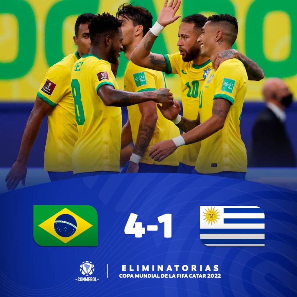 Brasil golea a Uruguay a ritmo de Samba en eliminatorias sudamericanas.