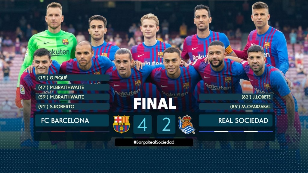 Barcelona ganó 4-2 a la Real Sociedad, en un partido que marcaba el regreso a la liga sin Leo Messi.…