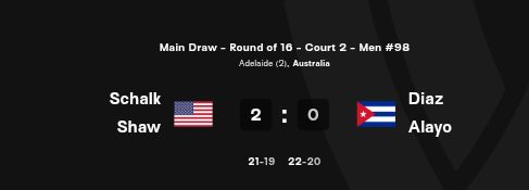 La dupla de Schalk y Shaw está rankeada en el lugar 20 del mundo. Su mejor resultado de 2025 fue un tercer lugar en el torneo Élite de Quintana Roo, en marzo.
