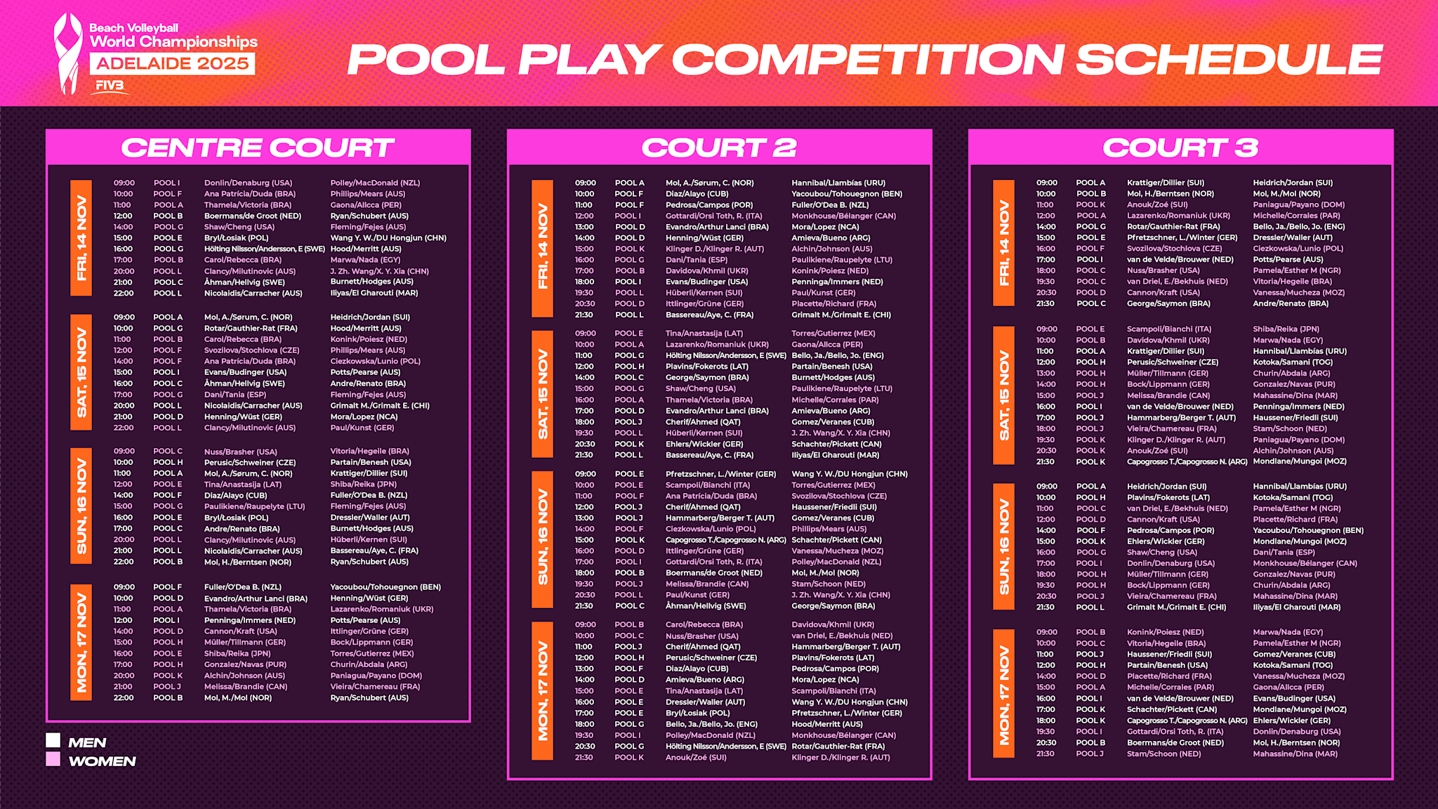 Por su parte, en el grupo J estarán Damián Gómez y Eblis Veranes. La segunda dupla antillana topará el 15 frente a los difíciles cataríes Cherif y Ahmed.