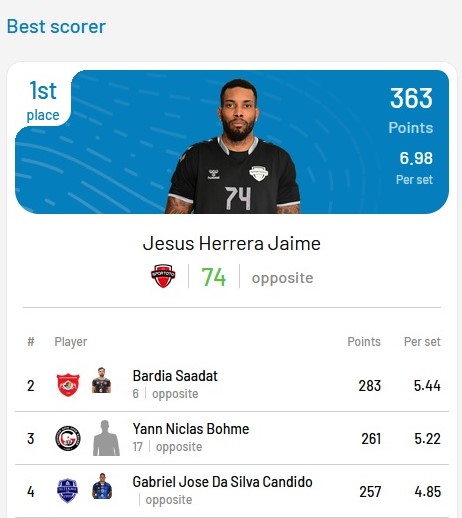 En una de sus mejores temporadas de los últimos años, el zurdo Jesús Herrera marcha como puntero entre los máximos anotadores, con una altísima producción de casi 7 puntos por set como promedio.