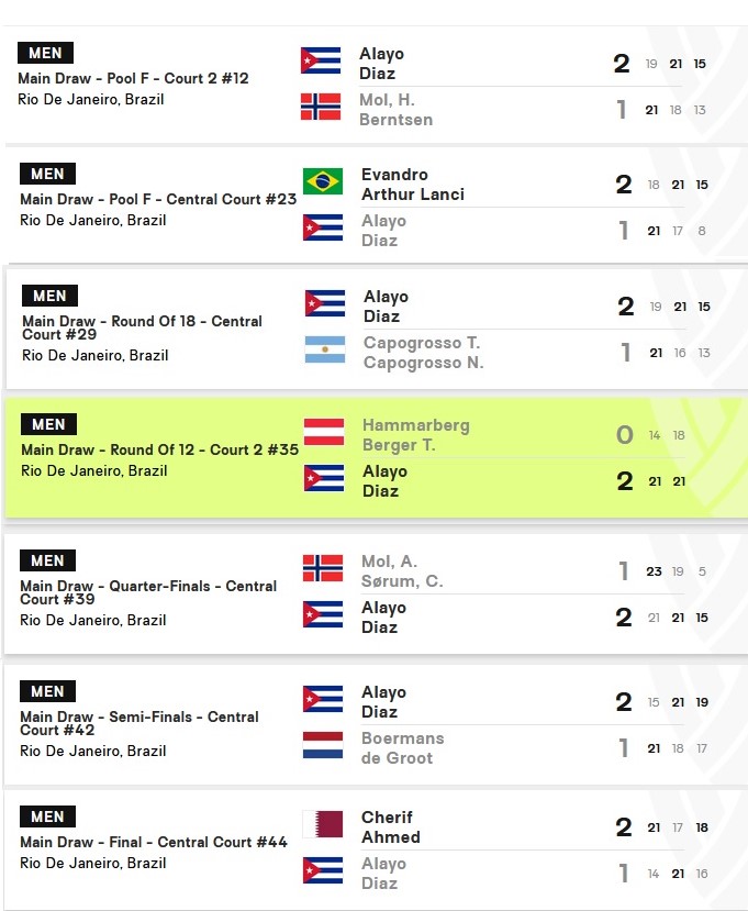 Una derrota dejando todo en la arena no demerita la espectacular actuación del binomio cubano a lo largo del certamen, en el que consiguieron cinco victorias en siete presentaciones, todas ante parejas del máximo nivel.